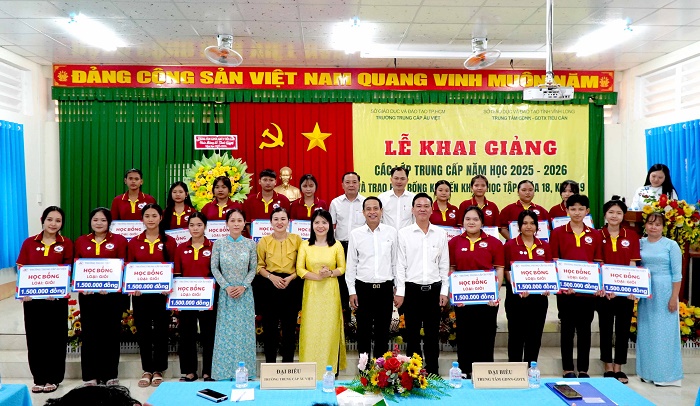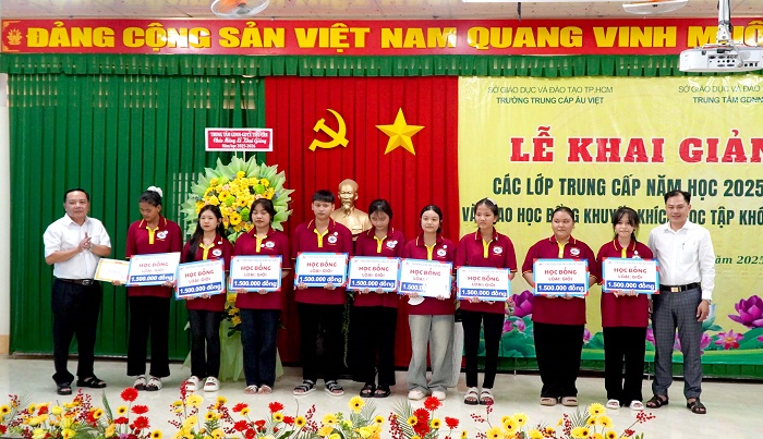 Dịp này, Ban Giám hiệu Trường Trung cấp Âu Việt Thành phố Hồ Chí Minh còn trao học bổng cho 21 học viên đạt thành tích tốt trong học tập của khóa 18 và khóa 19, mỗi suất 1,5 triệu đồng.