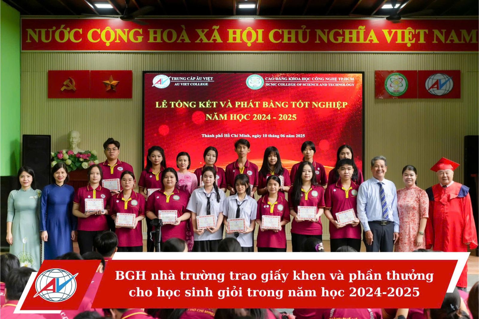 Sáng ngày 10/06/2025, Trường Trung cấp Âu Việt long trọng tổ chức Lễ tổng kết năm học 2024–2025 và Lễ tốt nghiệp Trung cấp niên khóa 2022–2024.